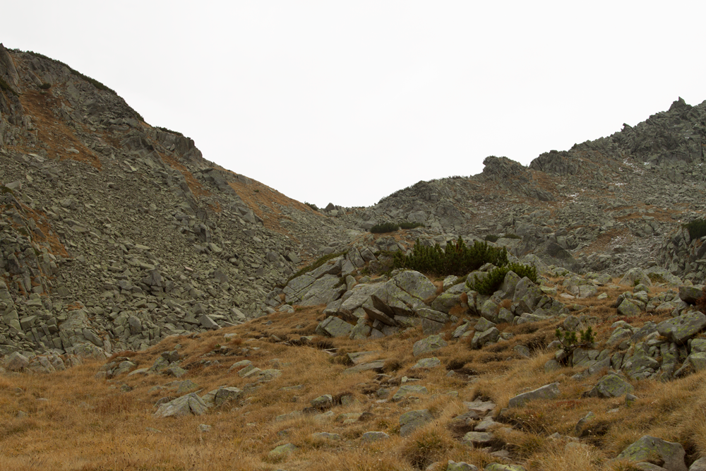 Изглед към седловината, която повечето туристи погрешно смятат за Башлийска порта. Вляво е връх Възела