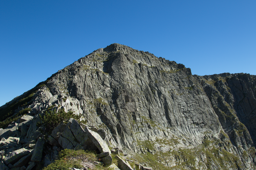 Северозапдната стена на върха - изключително стръмна, проходима е само с алпийска техника