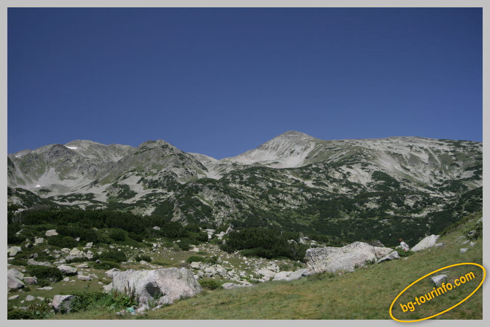 Голям Полежан в летен ден. Снимката е направена от брега на Поповото езеро.