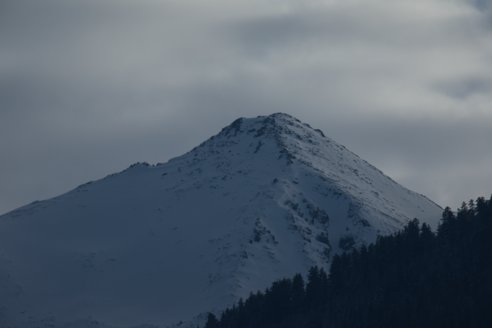 Същият склон в по-близък план, сниман с телеобектив с фокусно